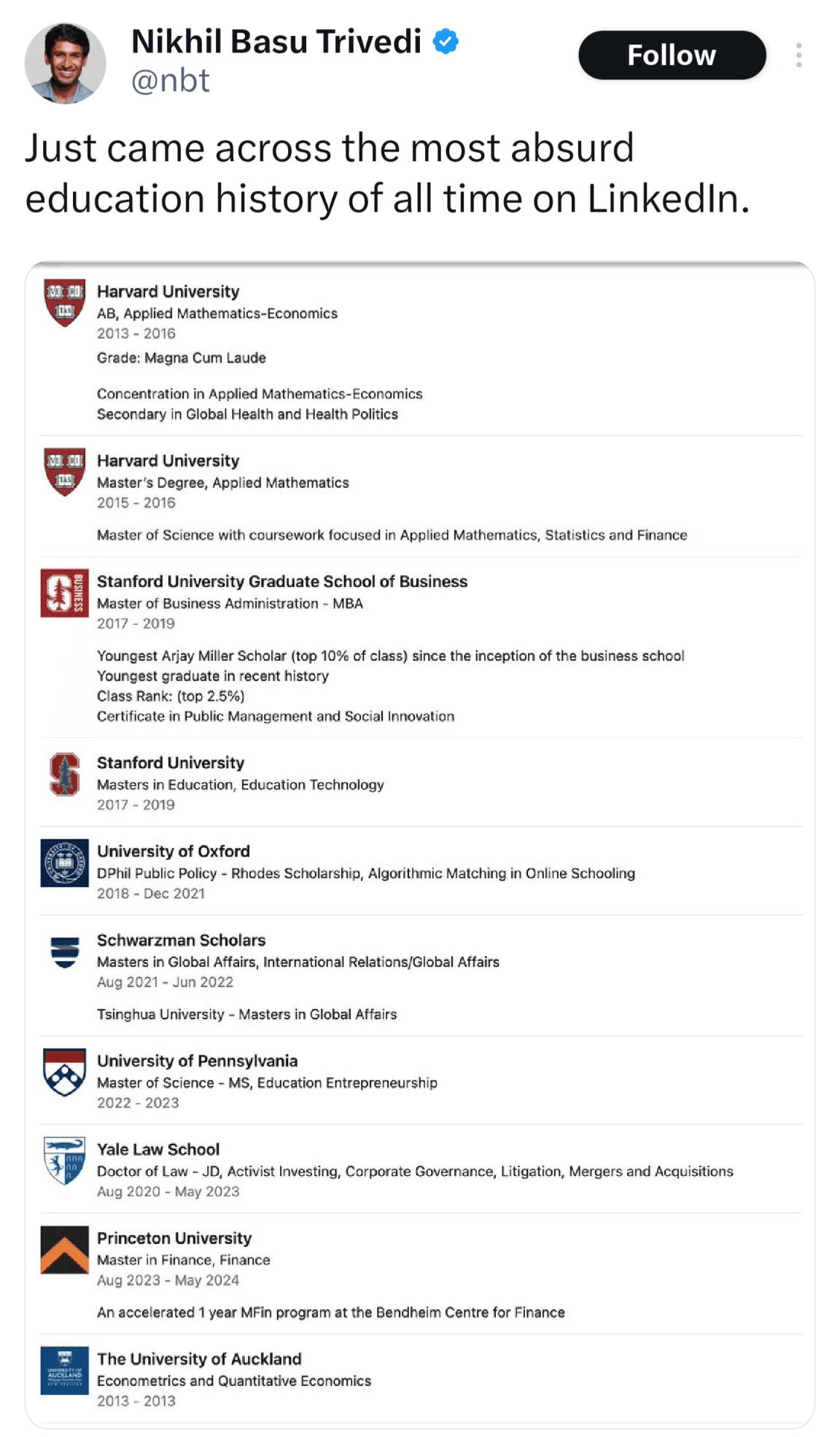 Nikhil Basu Trivedi, a startup co-founder, shared a screenshot of Beaton's profile on X (formerly Twitter), sparking a flurry of comments and questions. Some were awestruck, others skeptical, and a few wondered if this was a joke.